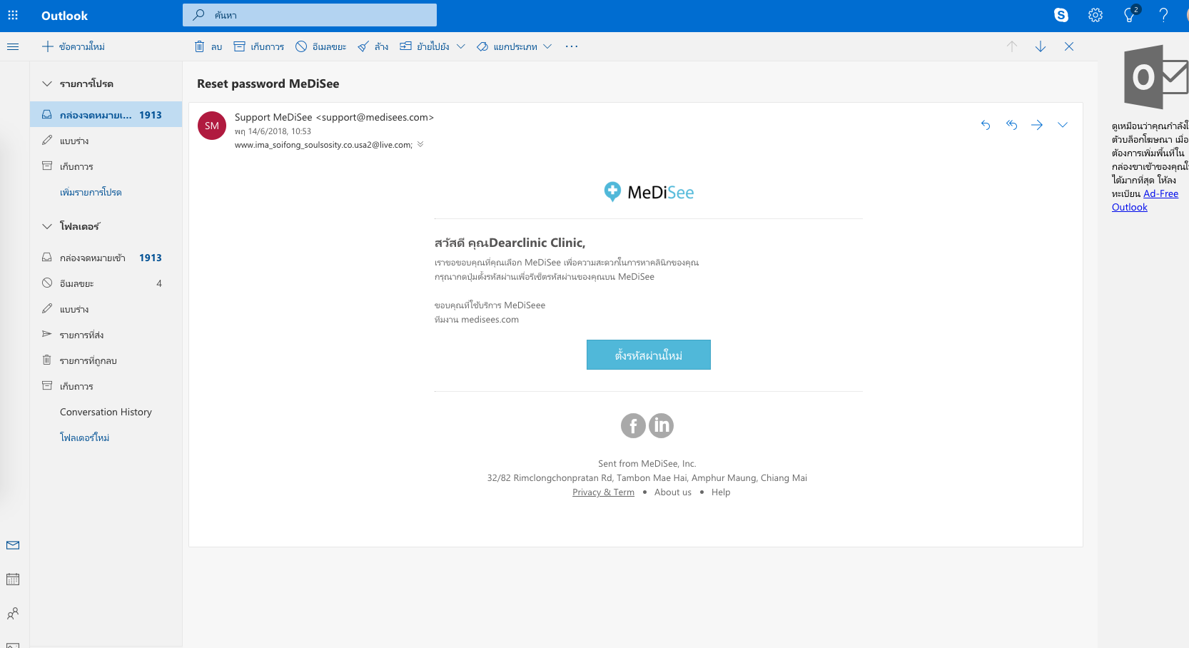 ยืนยันการเปลี่ยนรหัสผ่านทางอีเมล์