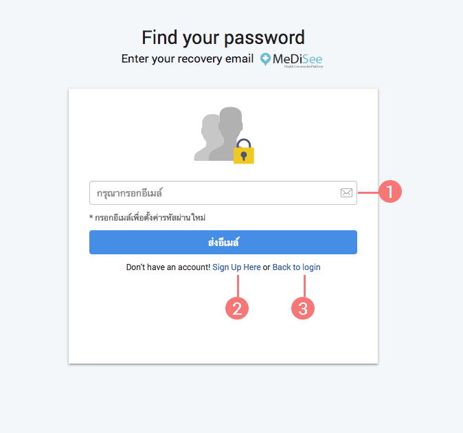 กรอกอีเมล์ผู้ใช้สำหรับตั้งค่ารหัสผ่าน