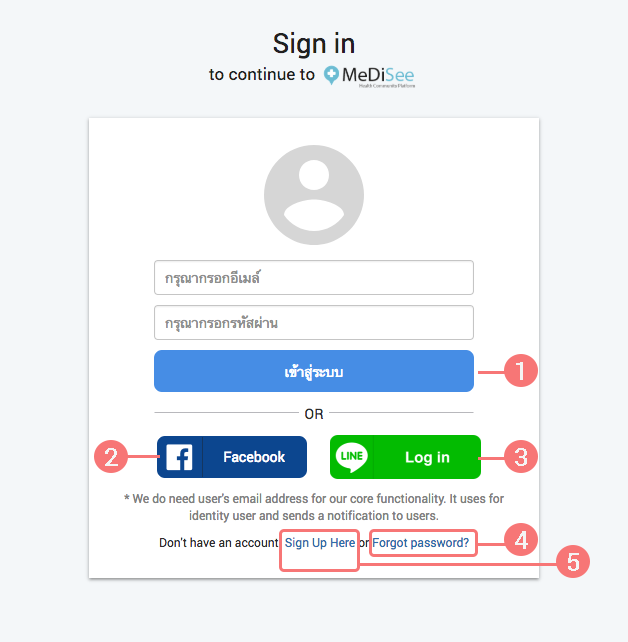 อีเมล์ที่ใช้เข้าสู่ระบบสำหรับคลินิก *เป็นอีเมล์ที่ใช้สมัครสามาชิกครั้งแรก