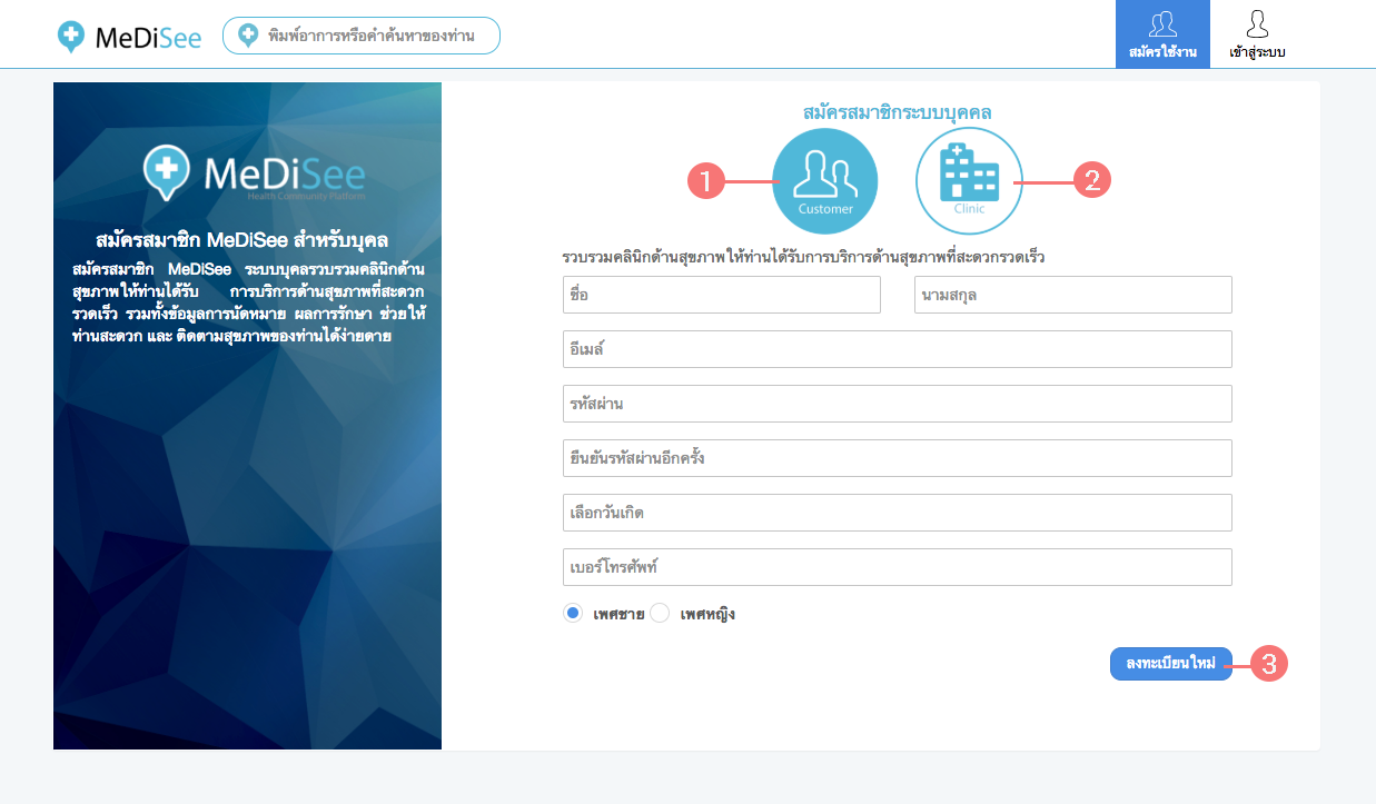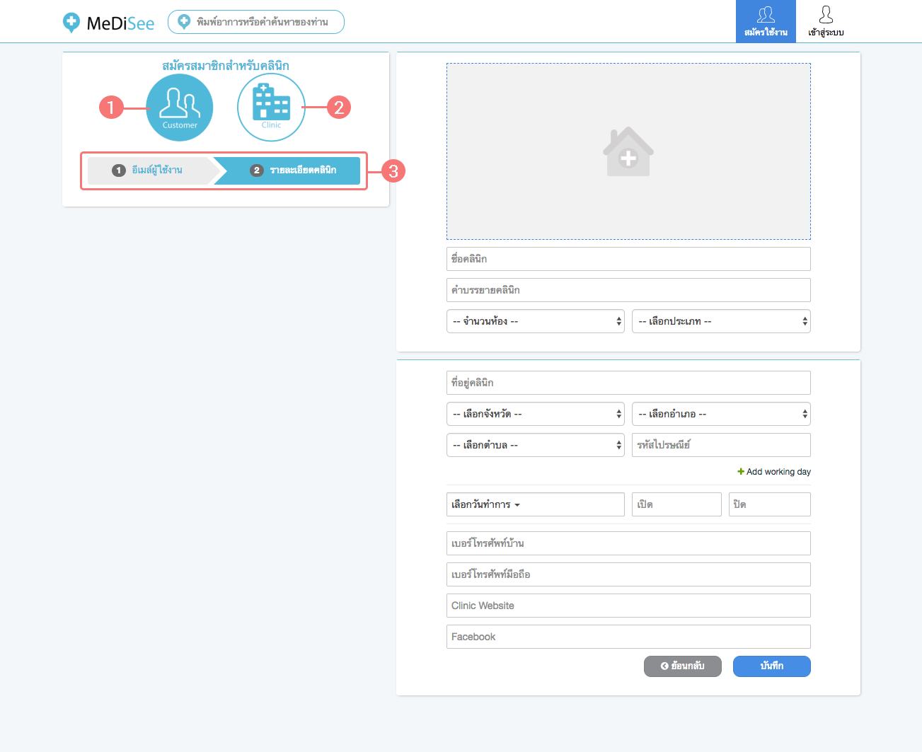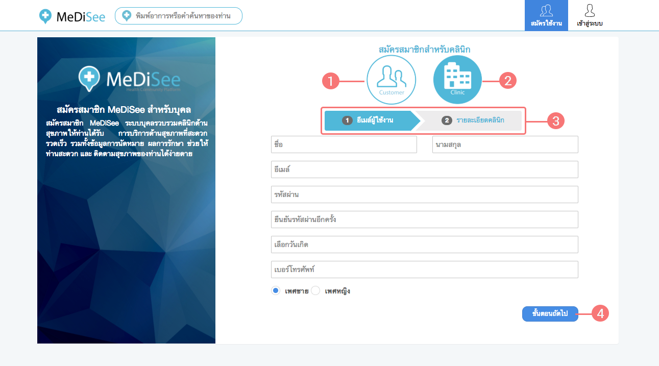 หน้าสมัครสมาชิกสำหรับคลินิก