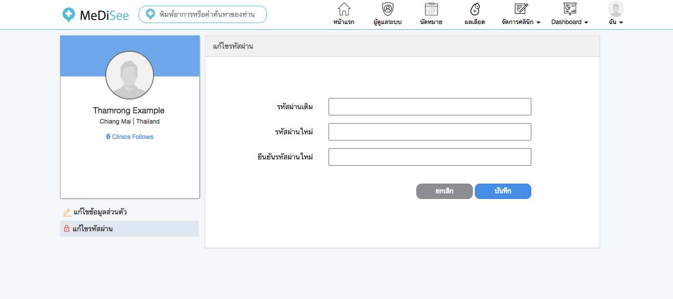 แท็บเมนูเปลี่ยนรหัสผ่าน