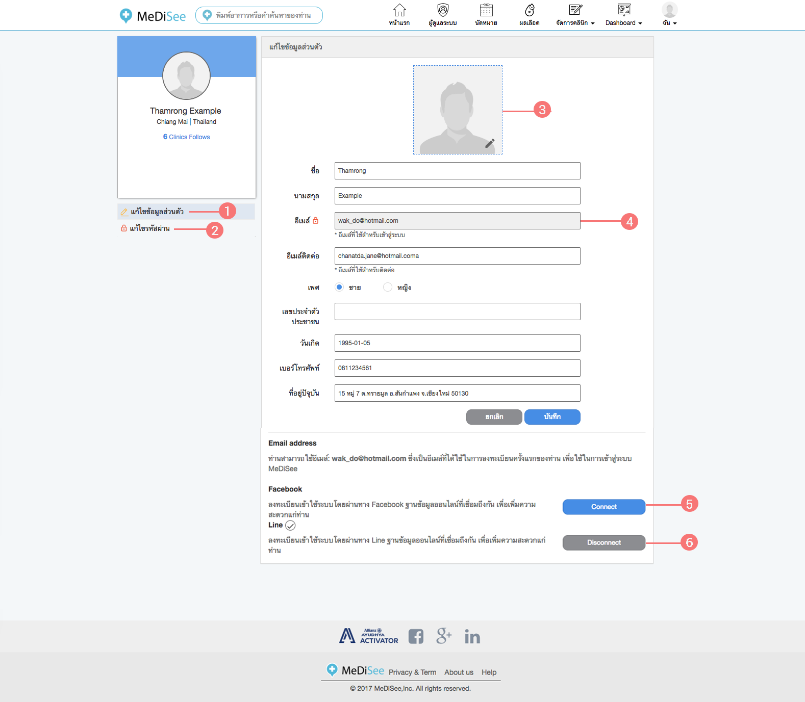อีเมล์ที่ใช้สำหรับเข้าสู่ระบบ *อีเมล์ที่ใช้เข้าสู่ระบบไม่สามารถเปลี่ยนได้ แต่ท่านสามารถแก้อีเมล์ที่ใช้ติดต่อได้