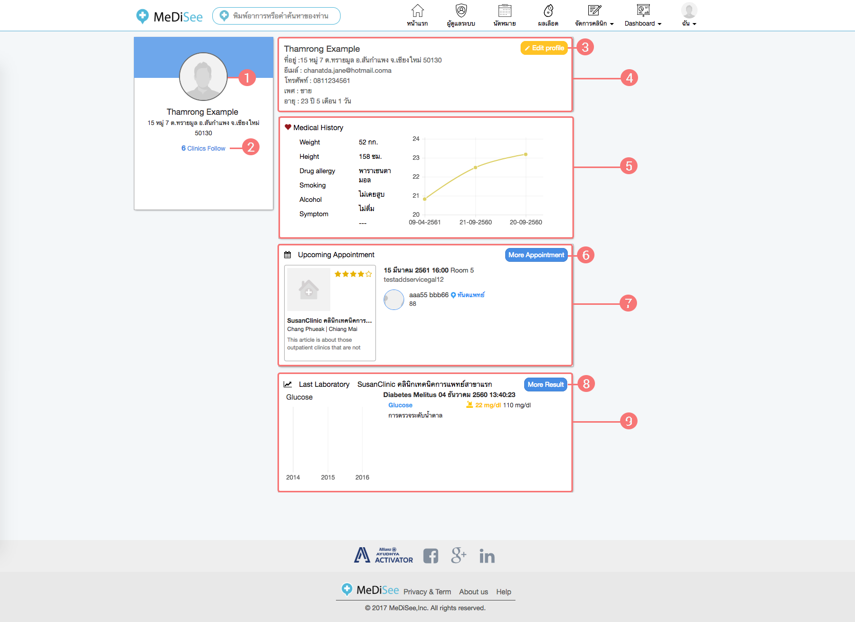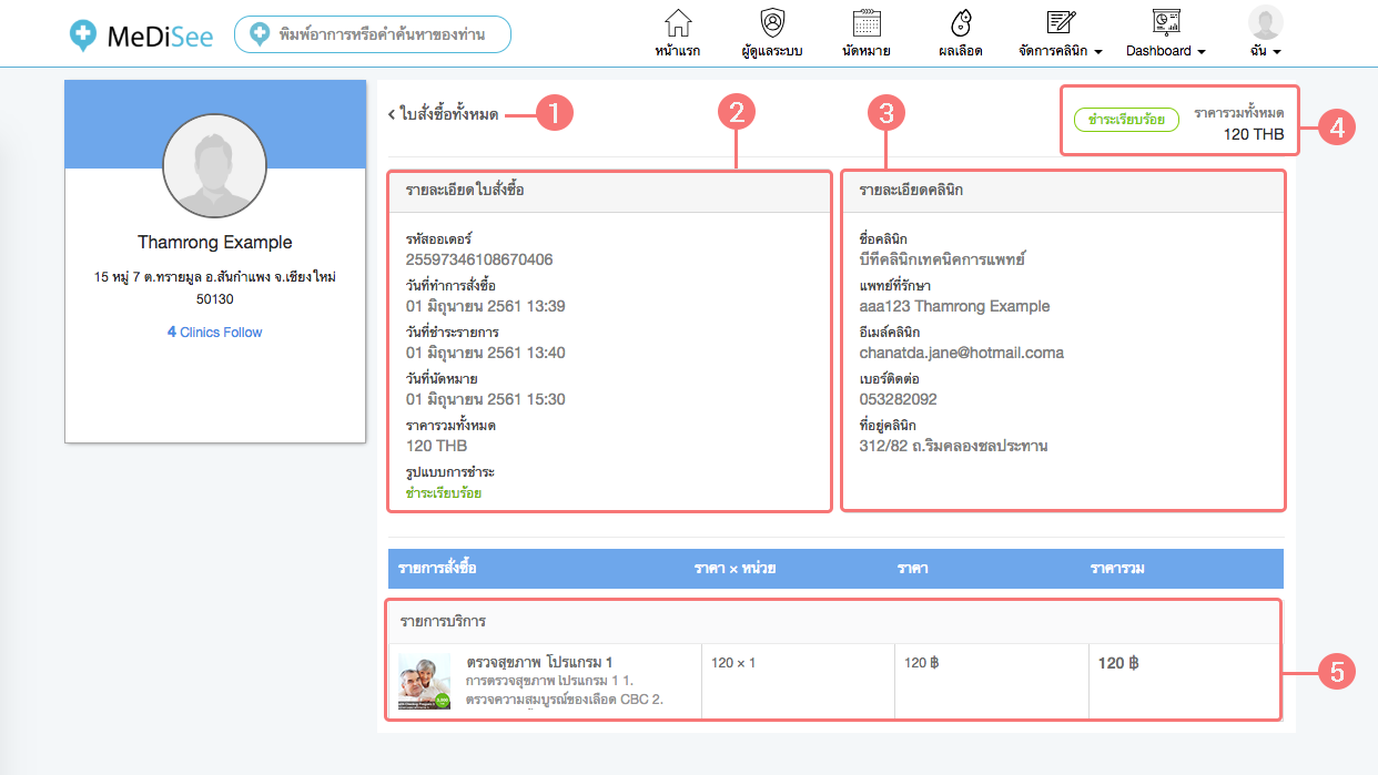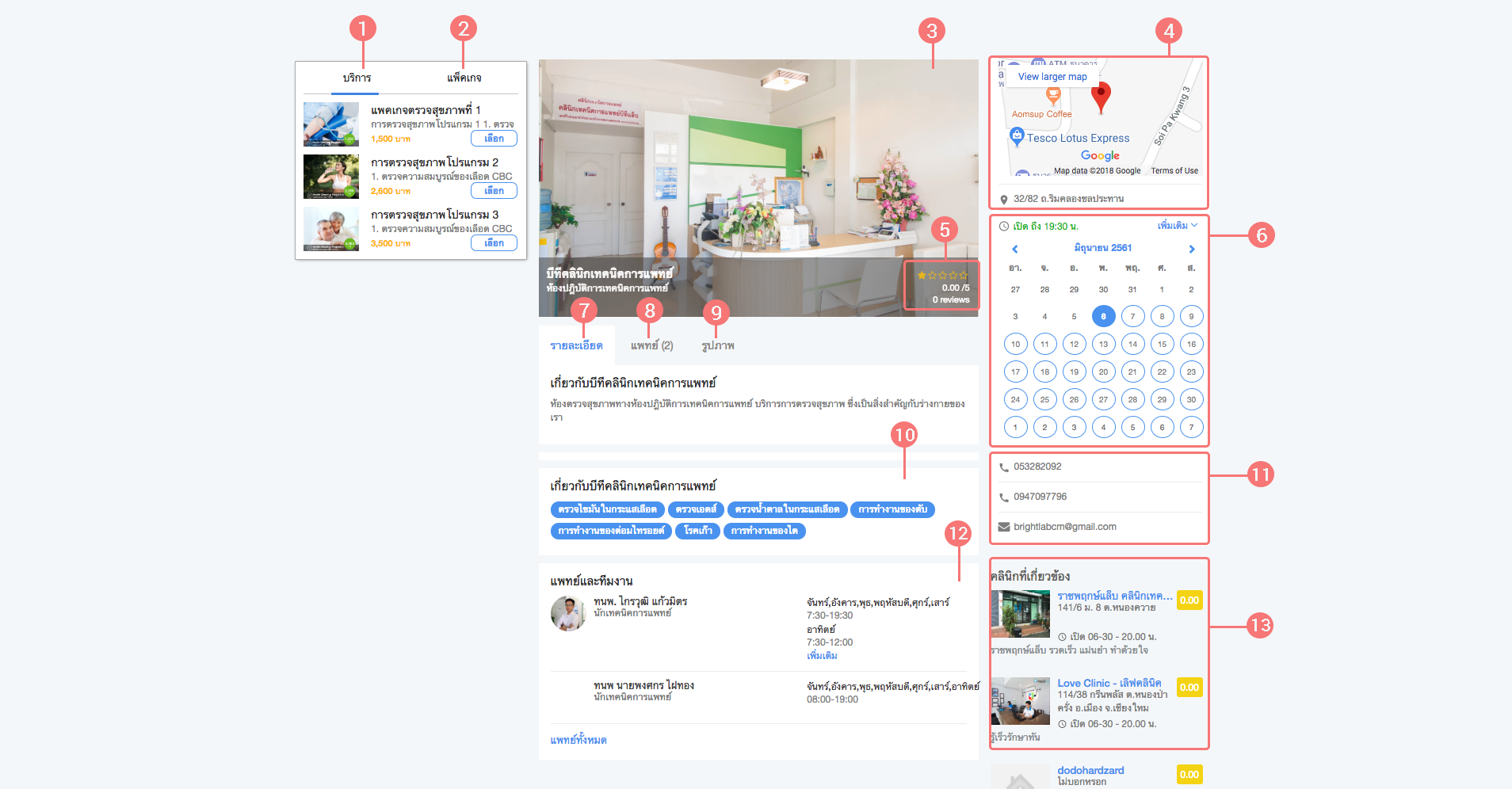 แท็บเมนู "รายละเอียด" แสดงรายละเอียดของคลินิก