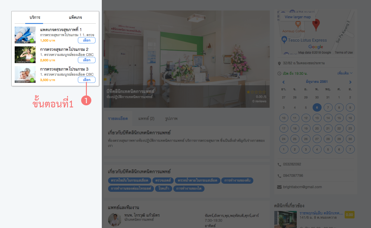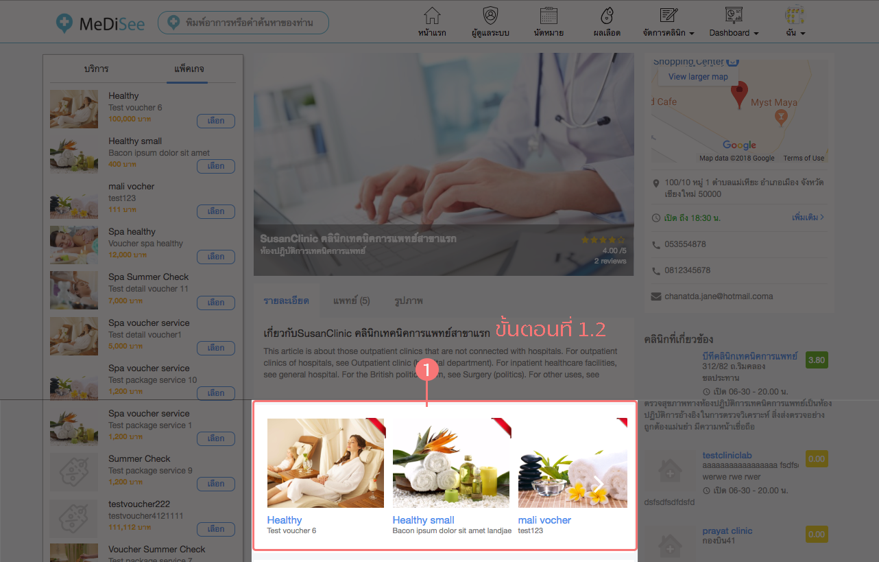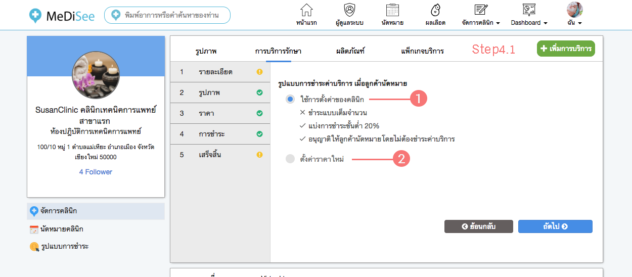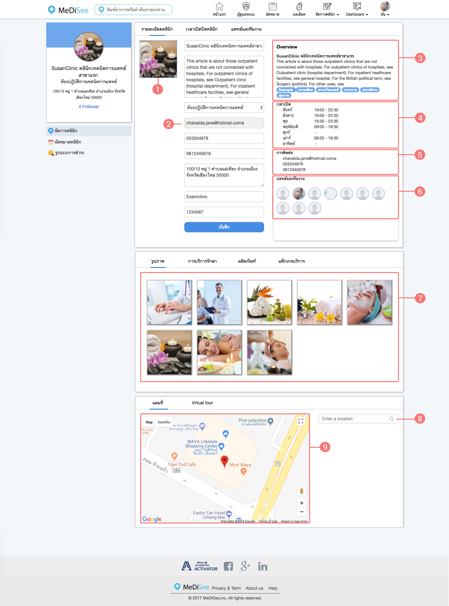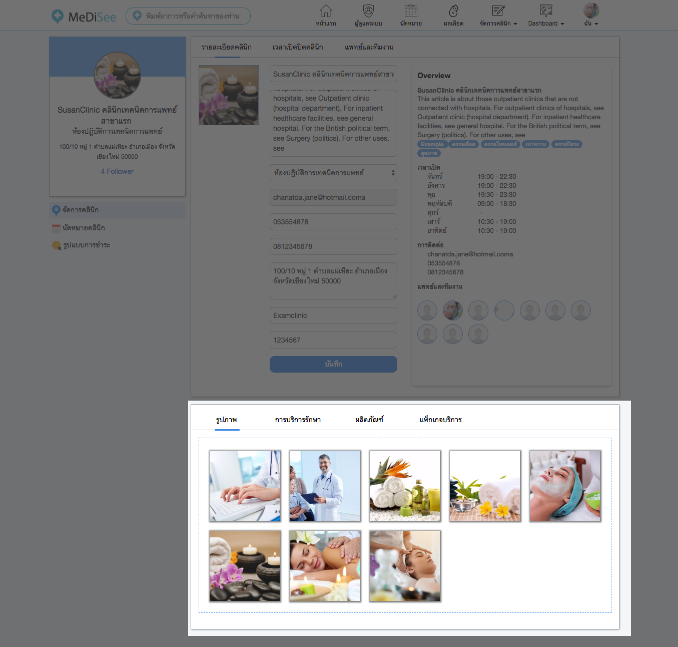 แสดงรายละเอียดคลินิกที่ทำการให้บริการ