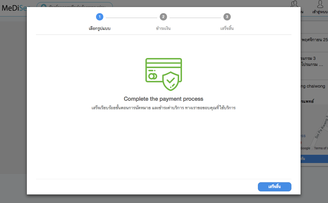 เสร็จสิ้นขั้นตอนการชำระค่าแพ็กเกจ