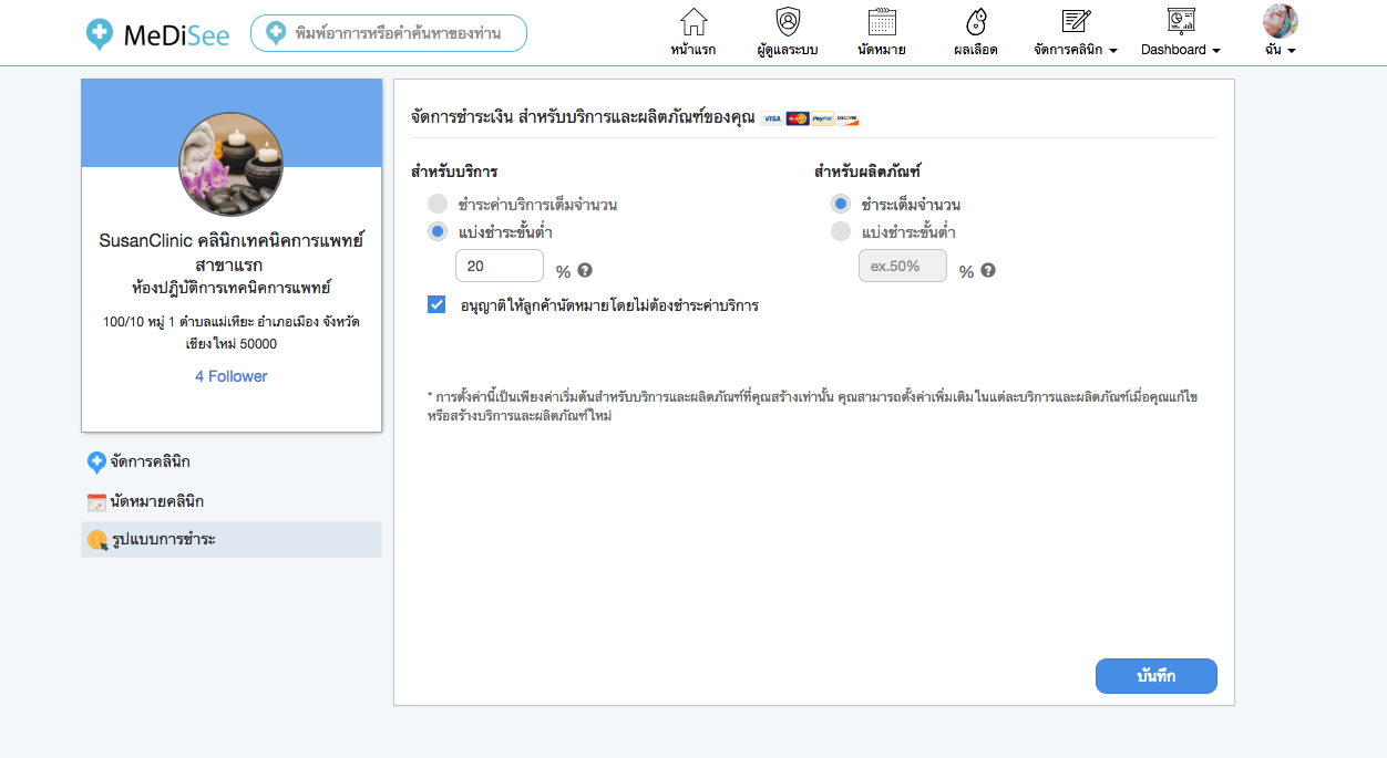 เช็คถูก เมื่อต้องการให้คนไข้สามารถนัดหมายได้โดยไม่ต้องชำระค่าบริการ