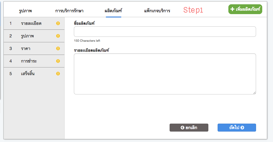 ขั้นตอนที่1 กรอกชื่อ รายละเอียดผลิตภัณฑ์