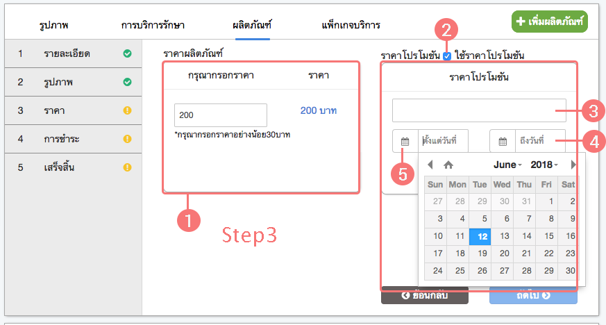 ขั้นตอนที่3 การกรอกราคาและโปรโมชันของผลิตภัณฑ์