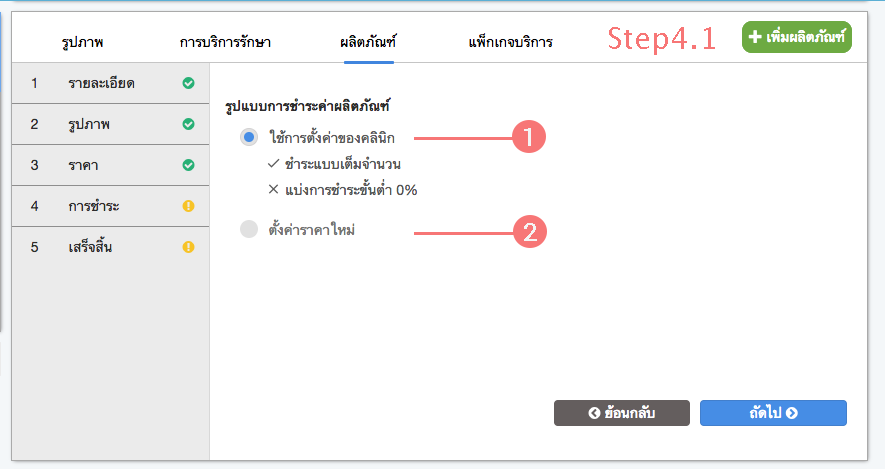 ขั้นตอนที่4.1 เลือกรูปแบบการชำระค่าผลิตภัณฑ์