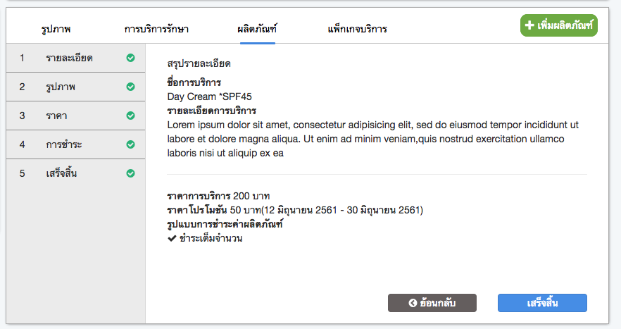 เสร็จสิ้นขั้นตอนการเพิ่มผลิตภัณฑ์