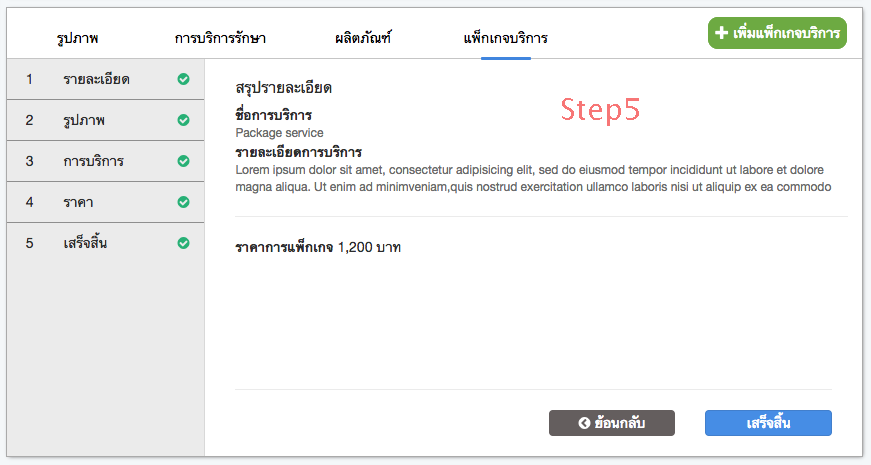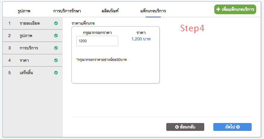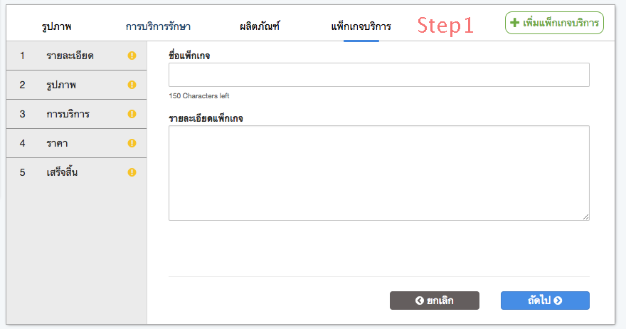 ขั้นตอนที่1 กรอกชื่อ รายละเอียดแพ็กเกจบริการ