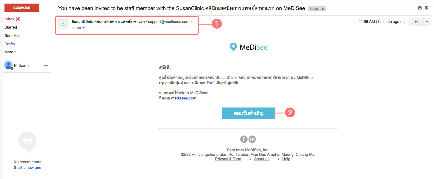 คำเชิญจะภูกส่งไปยังอีเมล์แพทย์เพื่อรอการตอบกลับ