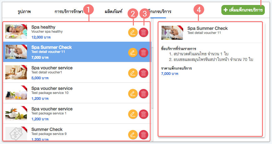ปุ่ม "ลบ" ลบรูปแพ็กเกจบริการ
